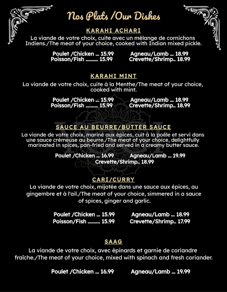 Nestled in the heart of Montreal, Restaurant Yogi offers an enticing array of Indian cuisine that captivates the senses. Their menu showcases aromatic vegetarian dishes like Matar Paneer and KADAHI PANEER, bringing together tender paneer and fresh vegetables simmered in flavorful curries. For meat lovers, the highlight is the Yogi's Mix Tandoori Special, featuring a delectable assortment of tandoori classics including Sheekh Kebab and Chicken Tikka, served with piquant tamarind and mint sauces.
